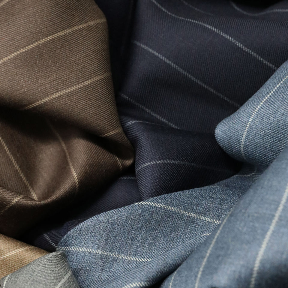 Pepper Lee brings together the very best of British textile craftsmanship, offering an extensive selection of premium tailoring fabrics. With a wide range of designs, textures, and colours, our collections provide exceptional quality and versatility for every bespoke project — from timeless suiting and formal wear to contemporary patterns and statement pieces. All cloth is available to buy online, combining convenience with confidence in quality.